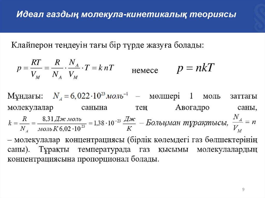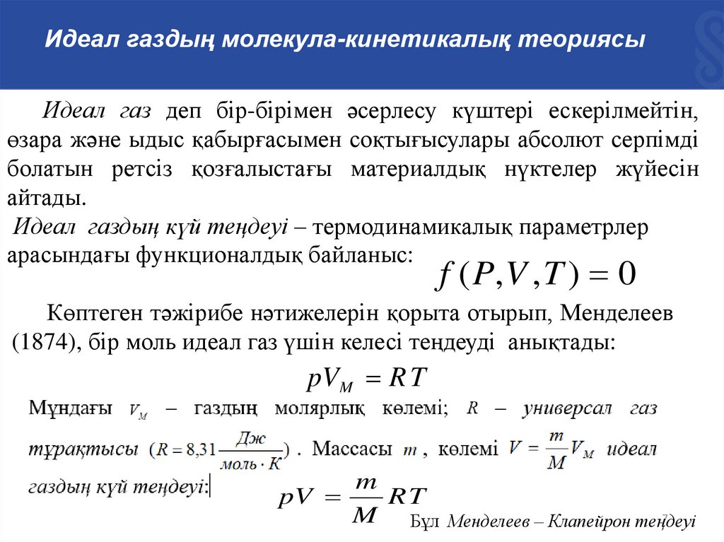 • МКТ негізгі теңдеуі.