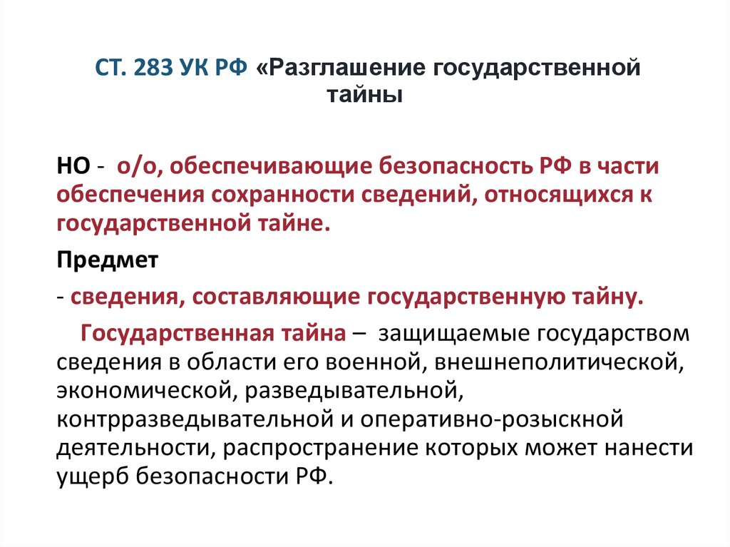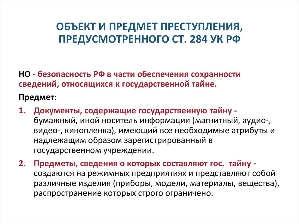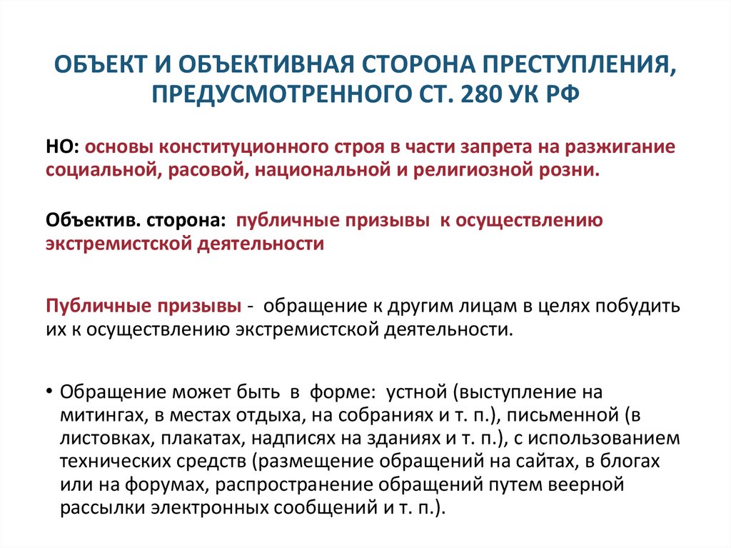 ОБЪЕКТ И ОБЪЕКТИВНАЯ СТОРОНА ПРЕСТУПЛЕНИЯ,ПРЕДУСМОТРЕННОГО СТ. 280 УК РФ