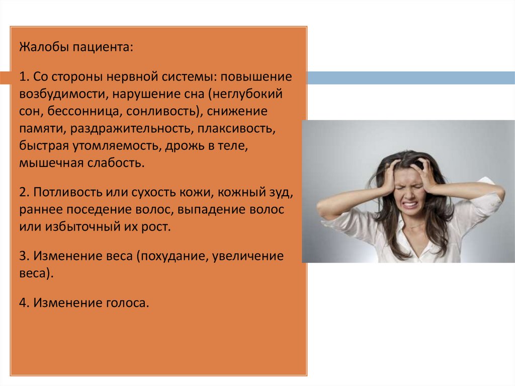 Жалобы пациента:1. Со стороны нервной системы: повышение