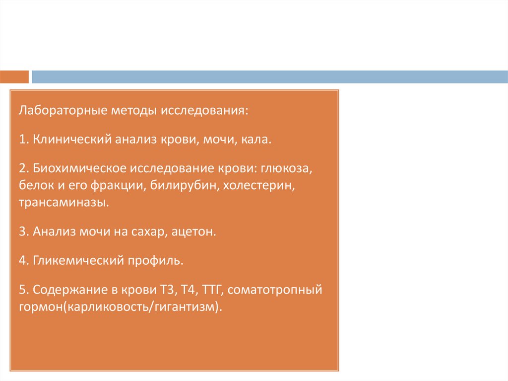 Лабораторные методы исследования:1. Клинический анализ крови, мочи, кала.