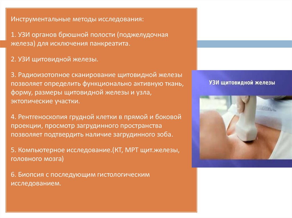 Инструментальные методы исследования:1. УЗИ органов брюшной полости (поджелудочная