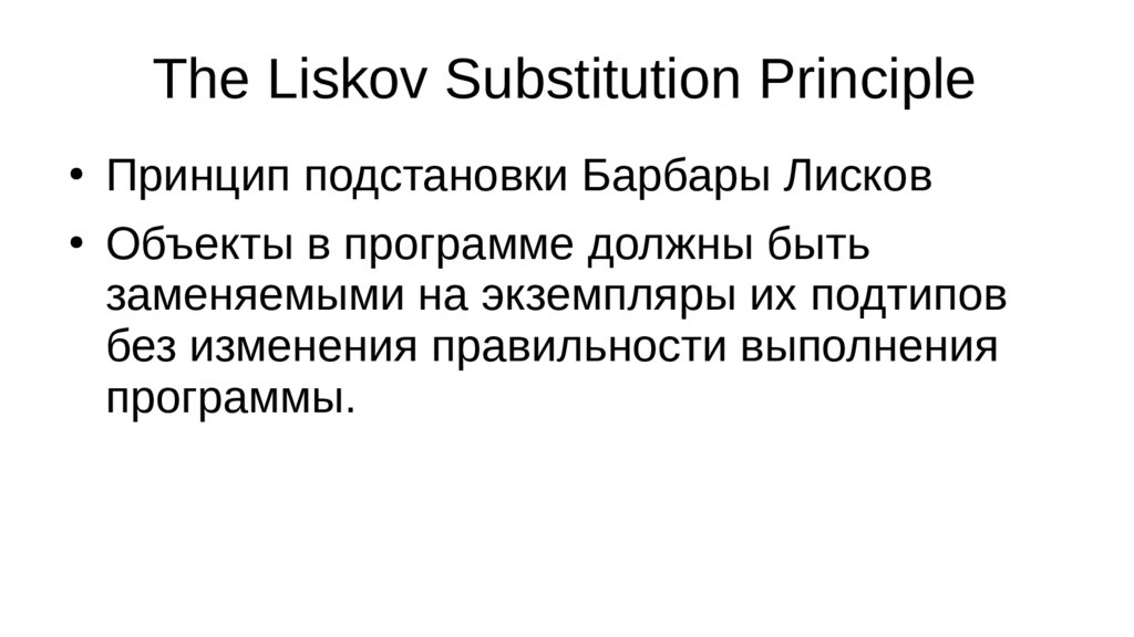 The Liskov Substitution PrincipleПринцип подстановки Барбары Лисков