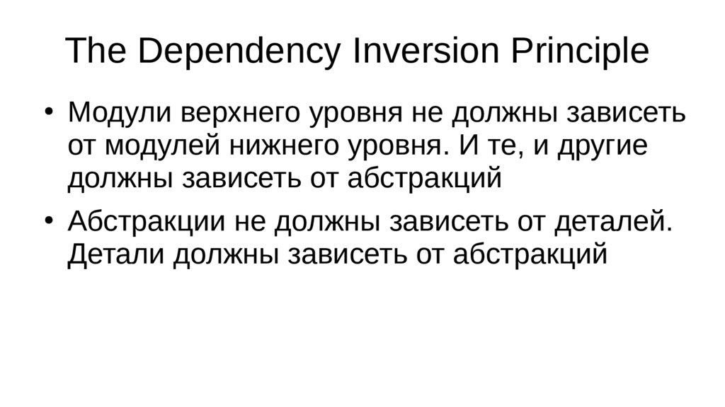 The Dependency Inversion PrincipleМодули верхнего уровня не должны зависеть