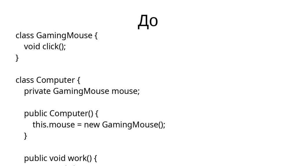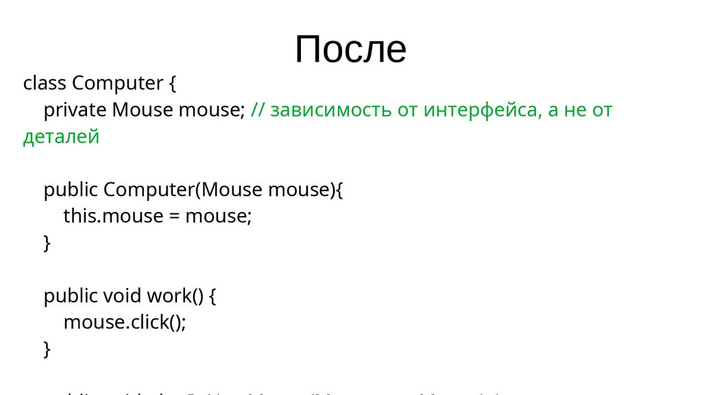 private Mouse mouse; // зависимость от интерфейса, а не от