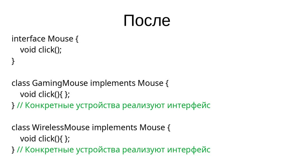 } // Реализация конкретной мышки