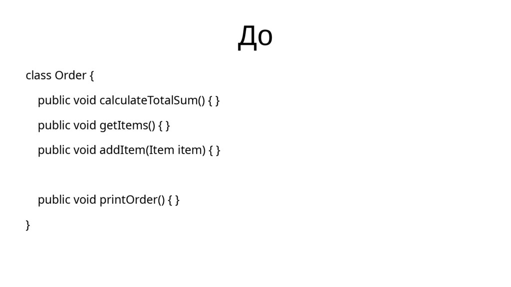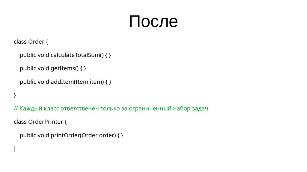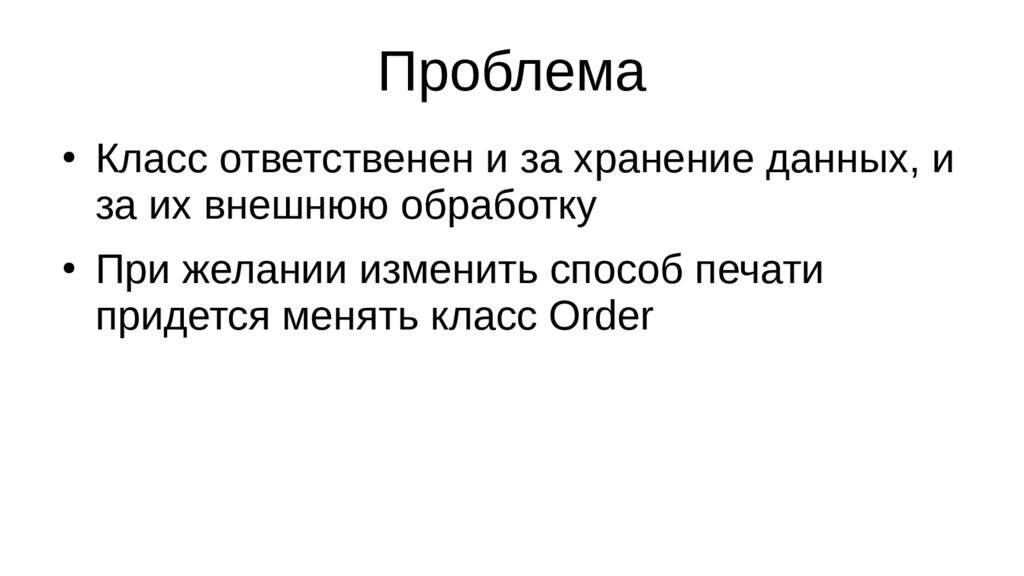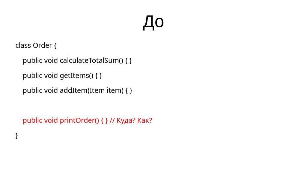 public void printOrder() { } // Куда? Как?