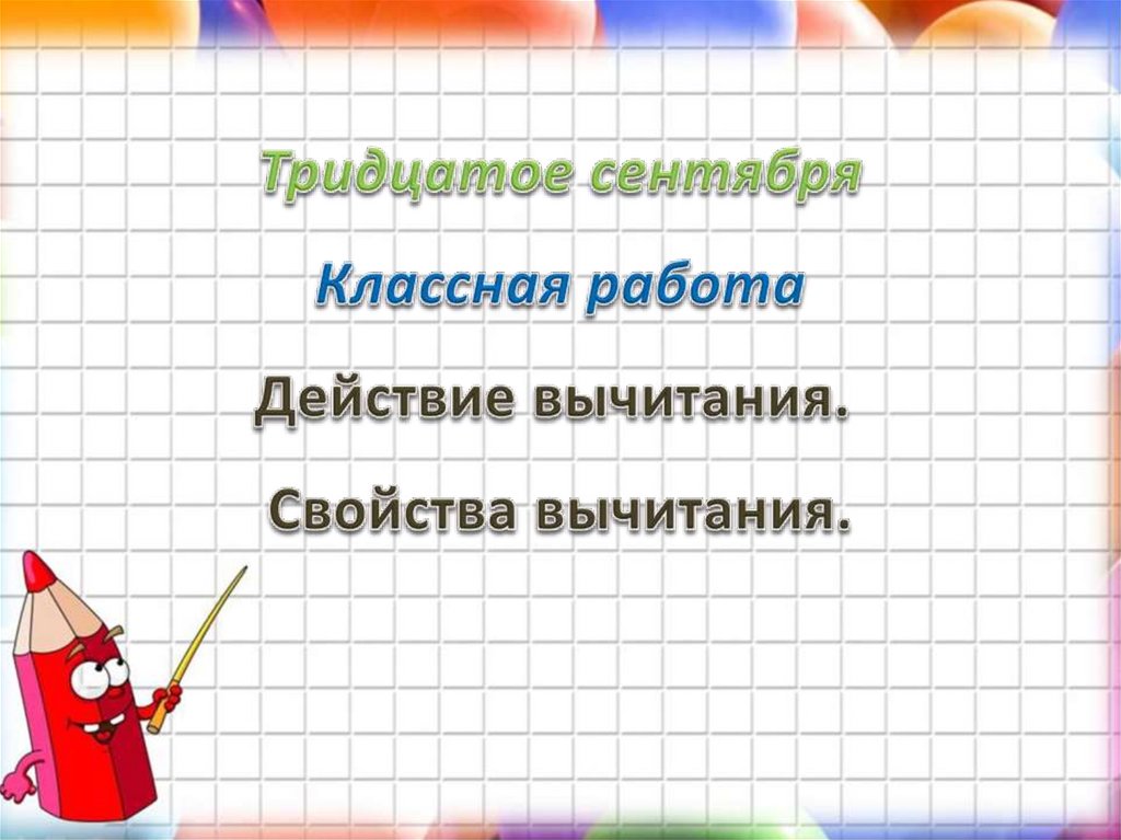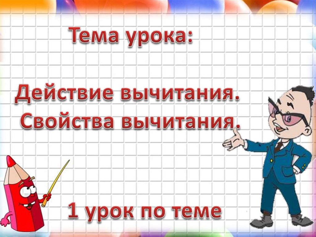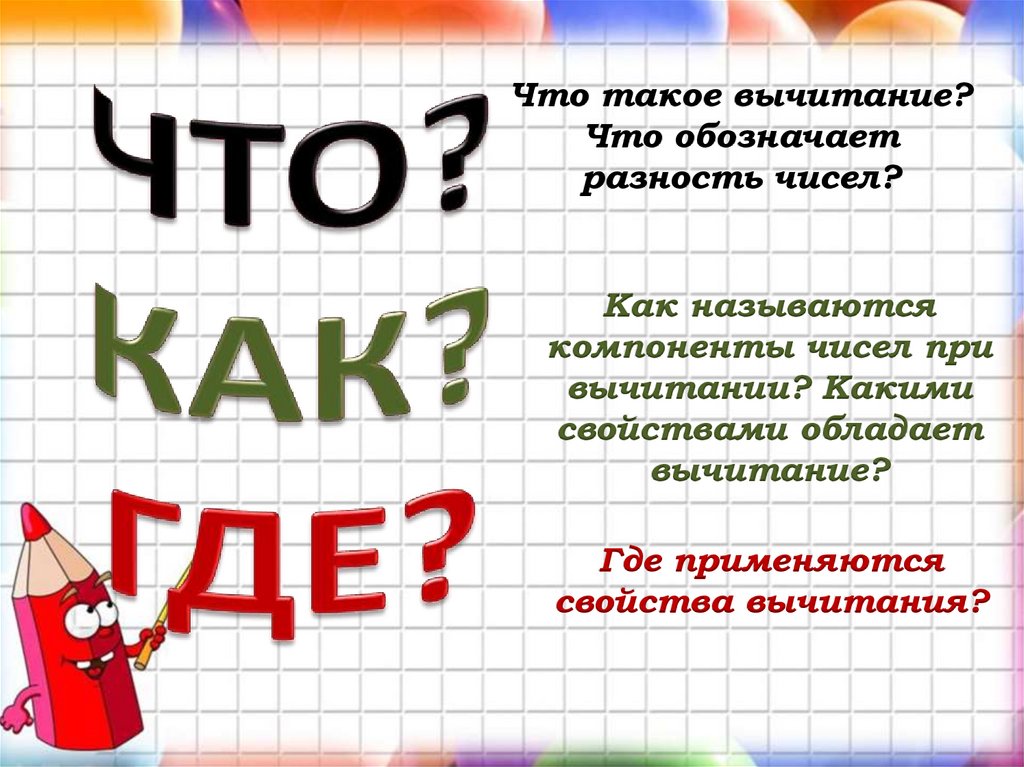 С вычитанием ты тоже хорошо знаком.Думаю, ты не забыл еще, что вычитание –