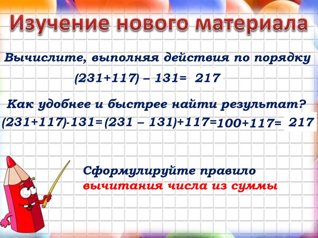 вычитания суммы из числа