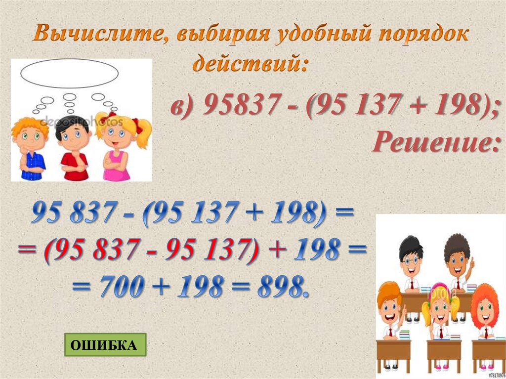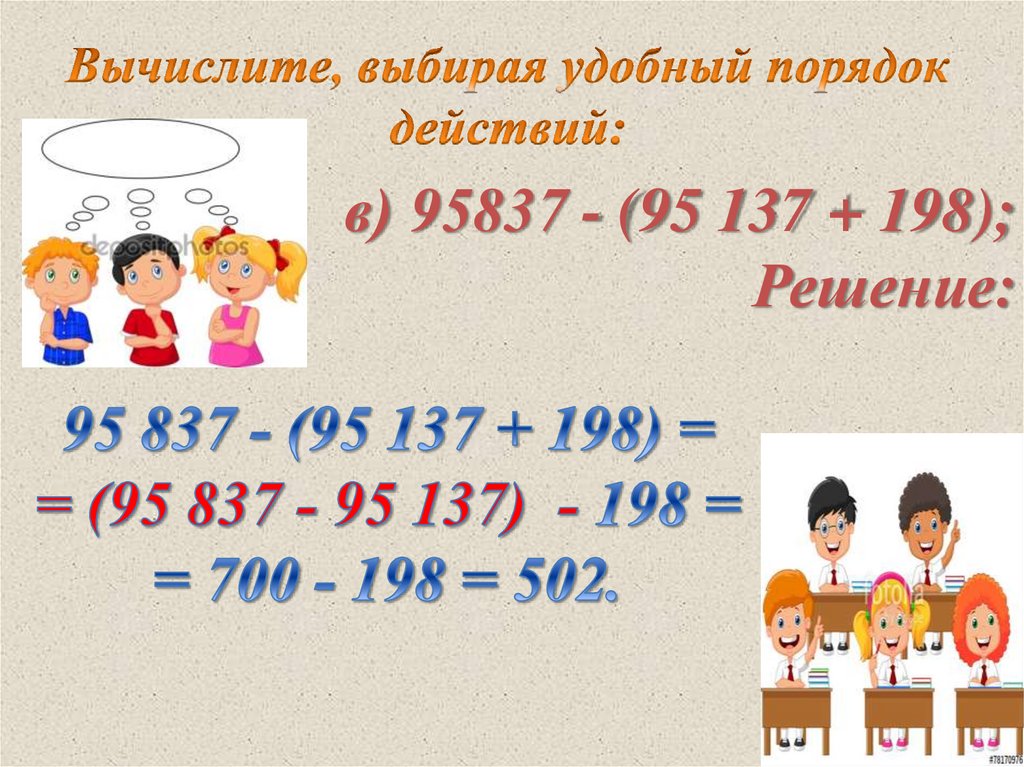 в) 95837 - (95 137 + 198);Решение: