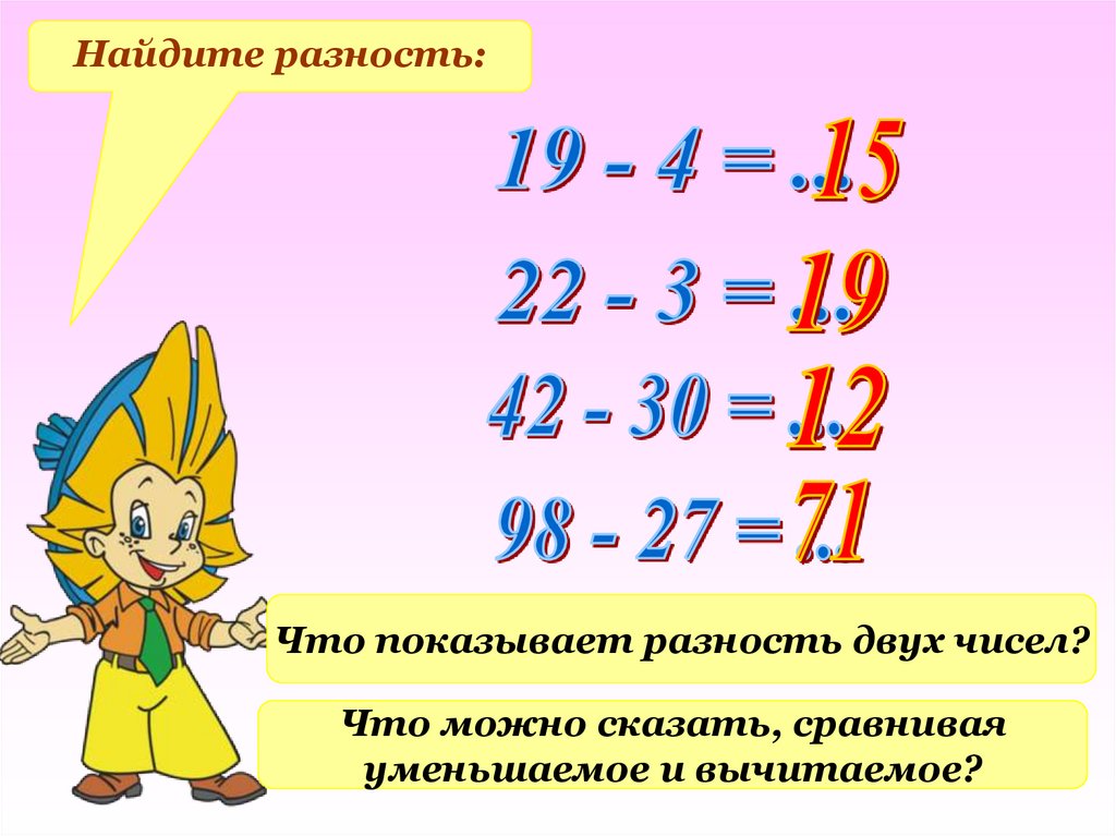 Найдите разность:Что показывает разность двух чисел?