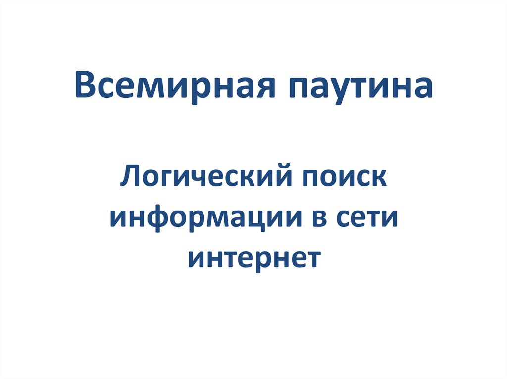 1. Всемирная паутина Логический поиск информации в сети интернет