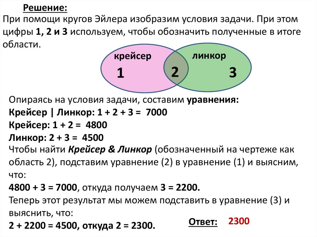Решение:При помощи кругов Эйлера изобразим условия задачи. При этом