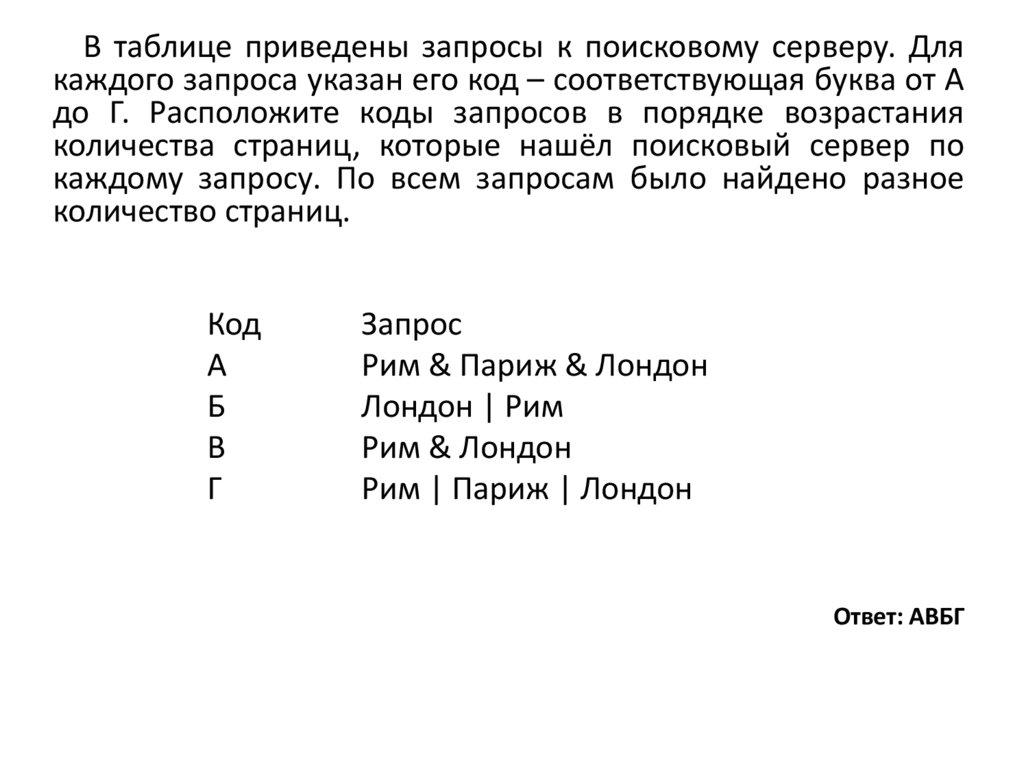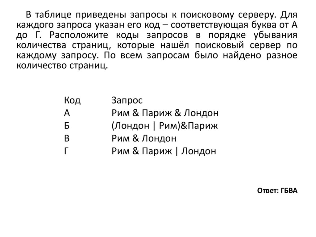 В таблице приведены запросы к поисковому серверу. Длякаждого запроса указан его код – соответствующая буква от А