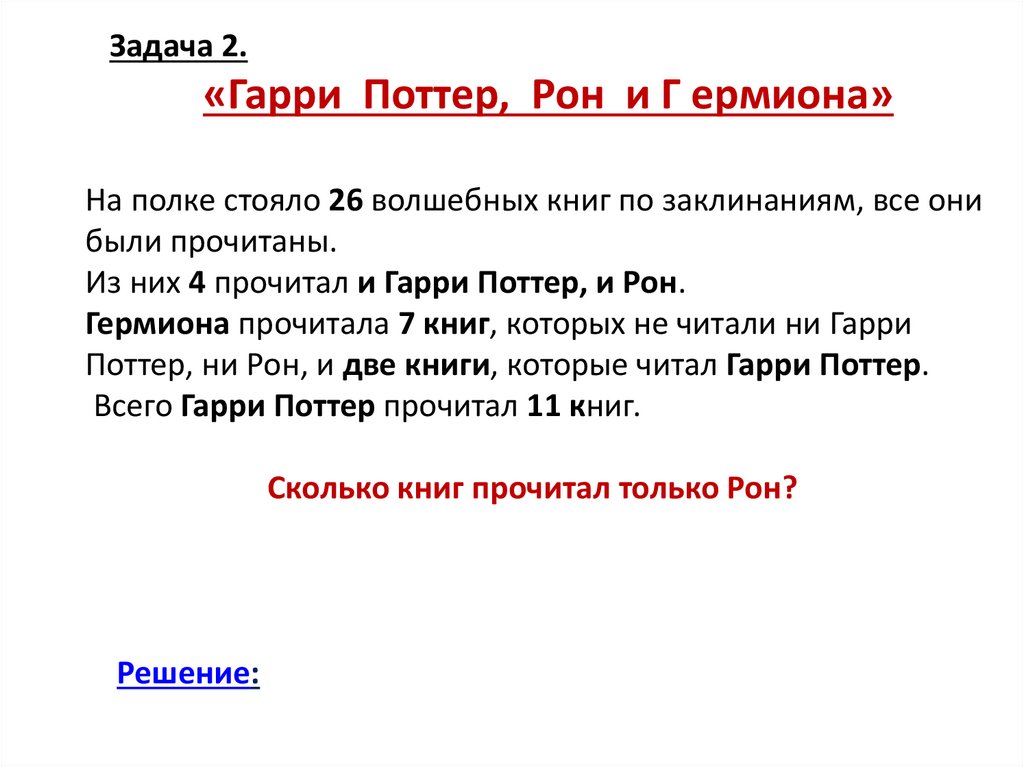 Задача 2.«Гарри Поттер, Рон и Г ермиона»