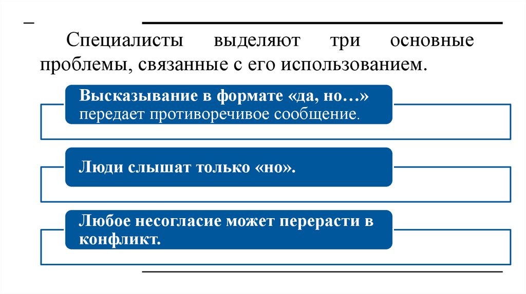«Да, но...» Формальное согласие, за которым следует возражение;