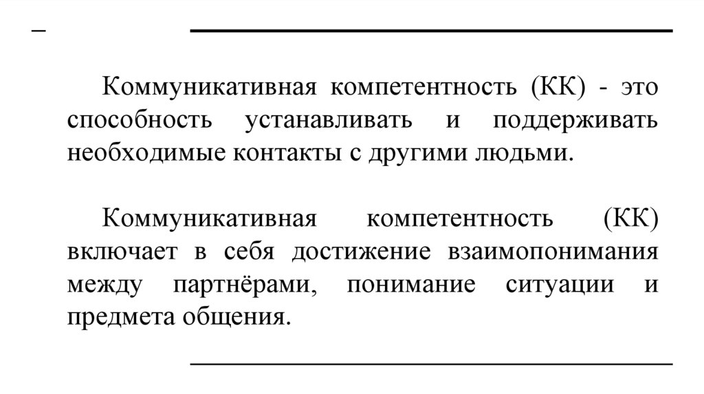 Коммуникативная компетентность (КК) - этоспособность устанавливать и поддерживать