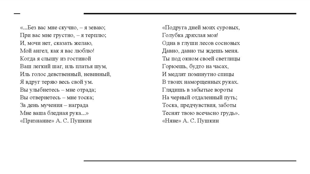 «...Без вас мне скучно, – я зеваю;При вас мне грустно, – я терплю;