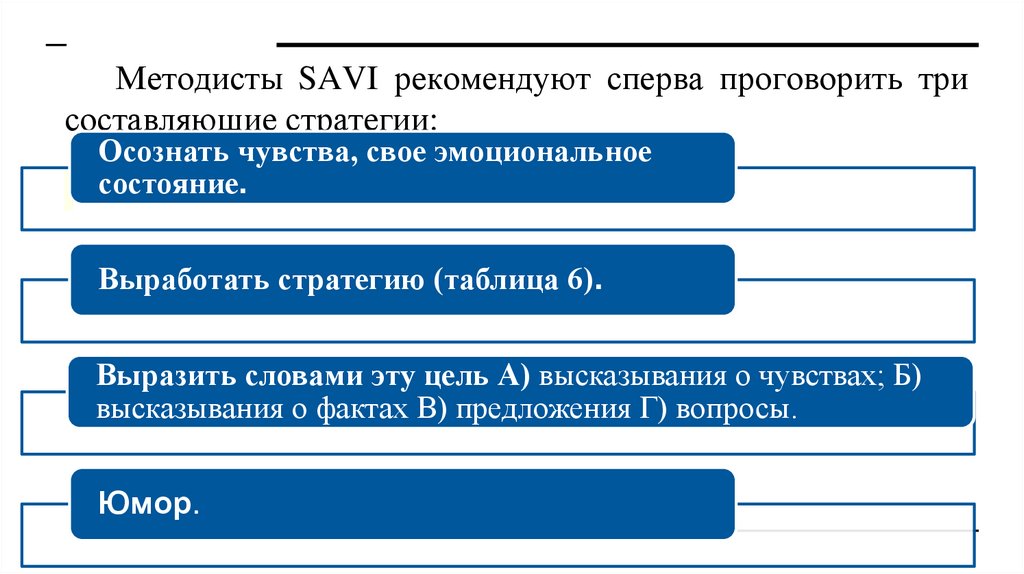Методисты SAVI рекомендуют сперва проговорить трисоставляющие стратегии: