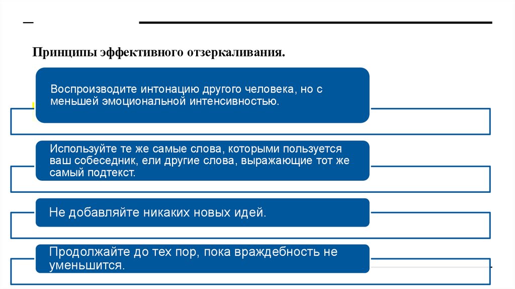 Принципы эффективного отзеркаливания.Воспроизводите интонацию другого человека, но с