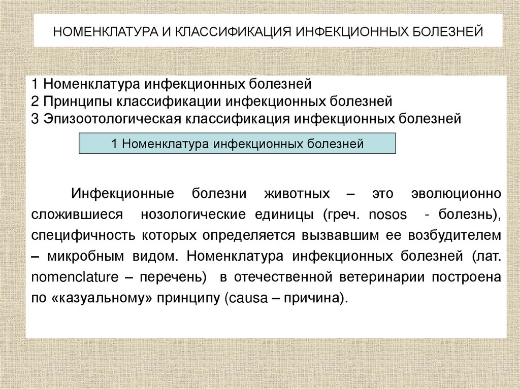 1. НОМЕНКЛАТУРА И КЛАССИФИКАЦИЯ ИНФЕКЦИОННЫХ БОЛЕЗНЕЙ