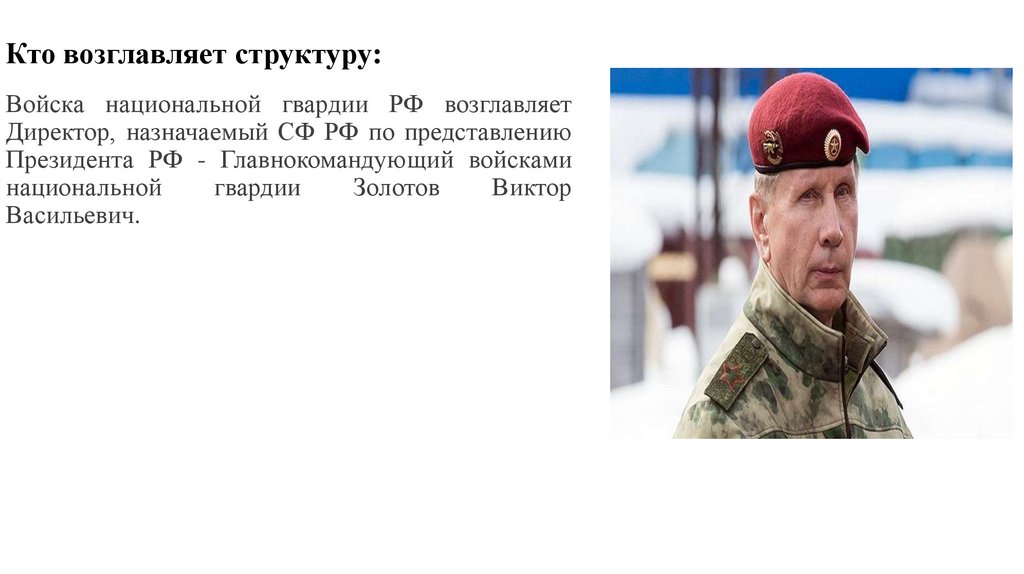 Кто возглавляет структуру:Войска национальной гвардии РФ возглавляет