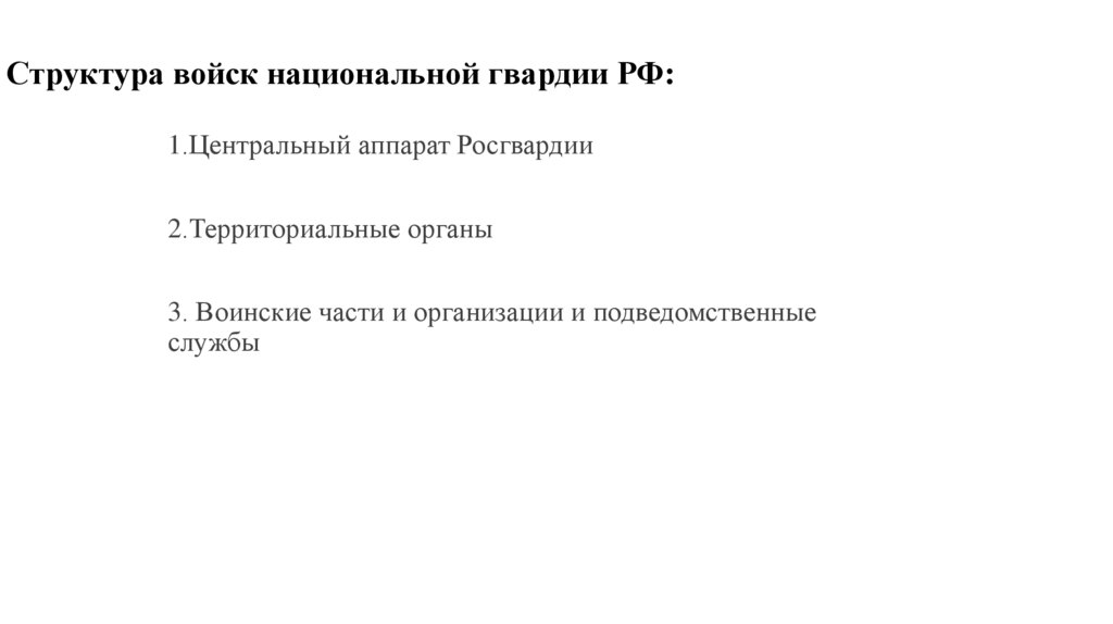 Структура войск национальной гвардии РФ:1.Центральный аппарат Росгвардии
