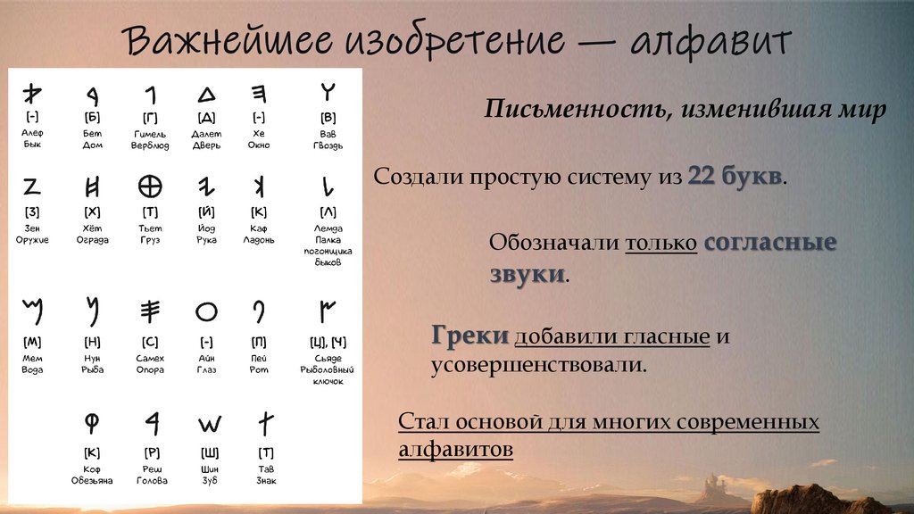 Письменность, изменившая мирСоздали простую систему из 22 букв.