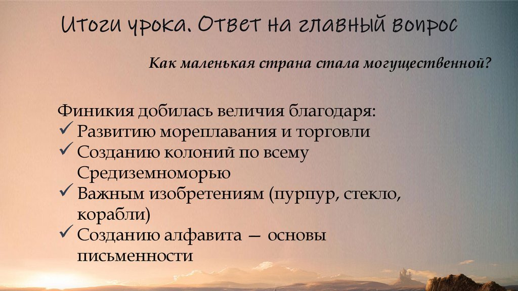 Как маленькая страна стала могущественной?Финикия добилась величия благодаря: