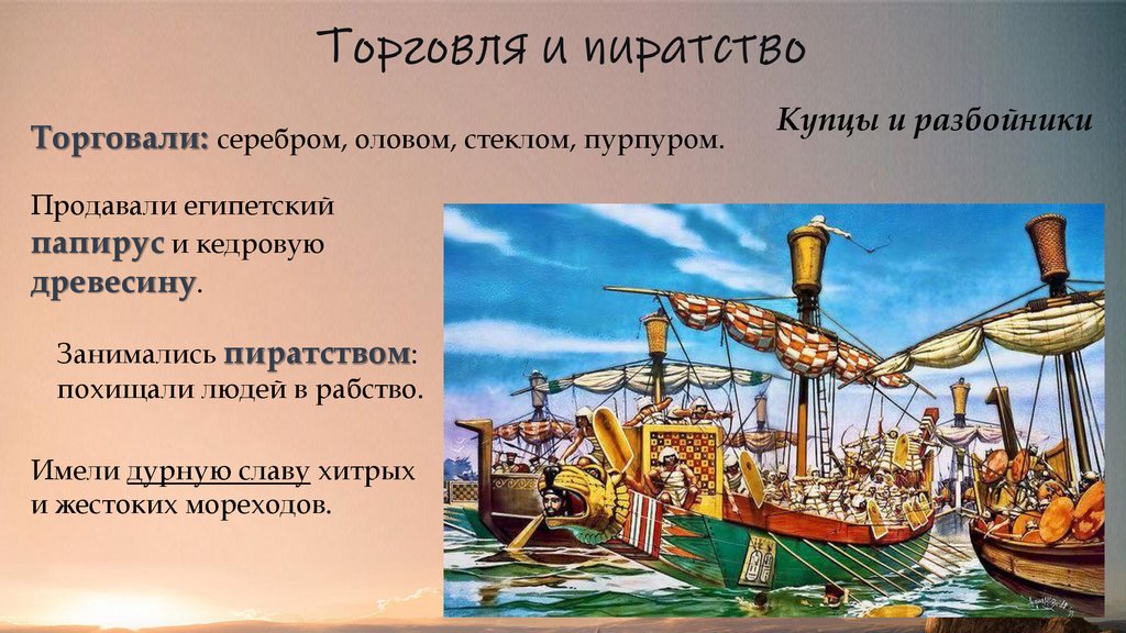 Торговали: серебром, оловом, стеклом, пурпуром.Продавали египетский