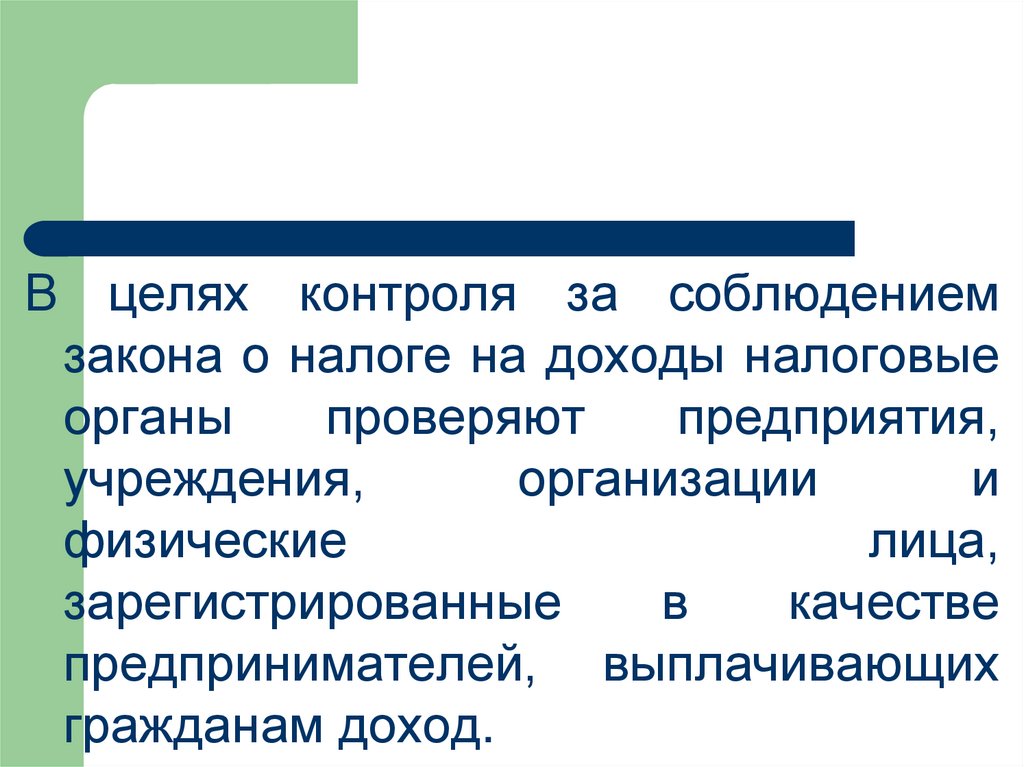 В целях контроля за соблюдениемзакона о налоге на доходы налоговые