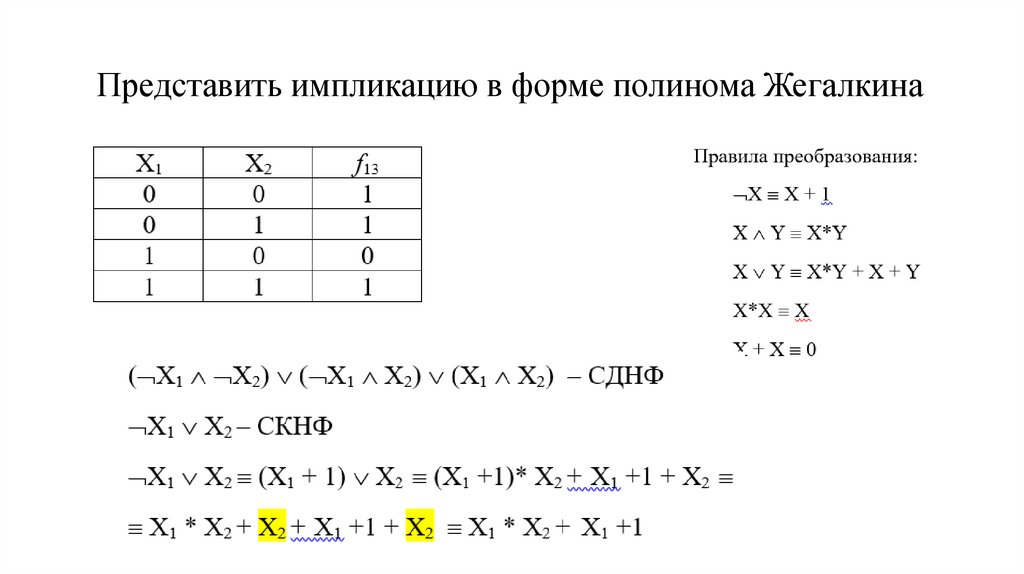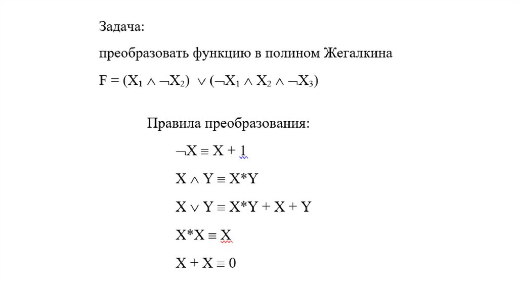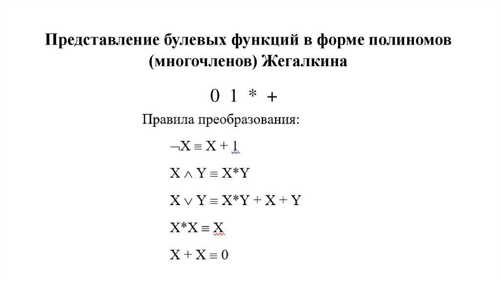Представление булевых функций в форме полиномов(многочленов) Жегалкина