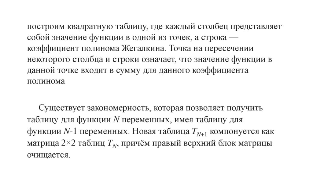 построим квадратную таблицу, где каждый столбец представляетсобой значение функции в одной из точек, а строка —