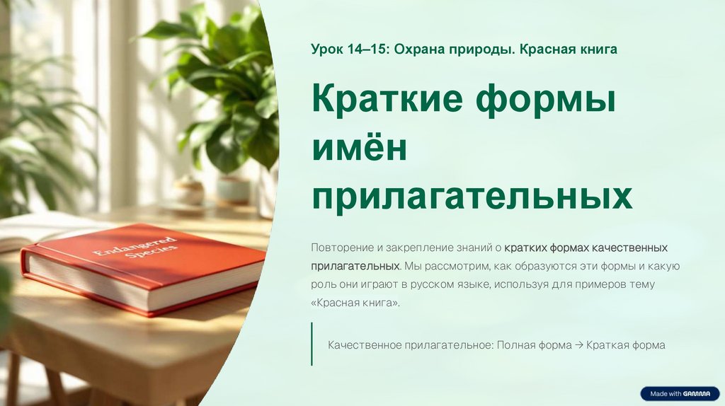 Урок 14–15: Охрана природы. Красная книгаКраткие формы