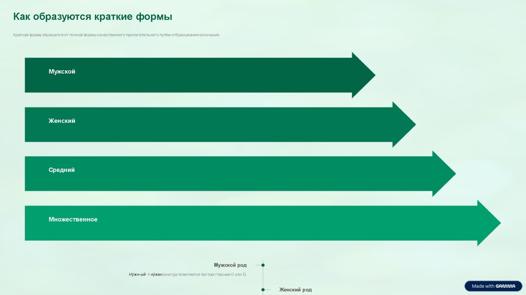 Как образуются краткие формыКраткая форма образуется от полной формы качественного прилагательного путём отбрасывания окончания.