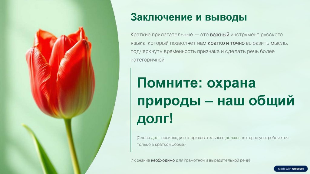 Заключение и выводыКраткие прилагательные — это важный инструмент русского