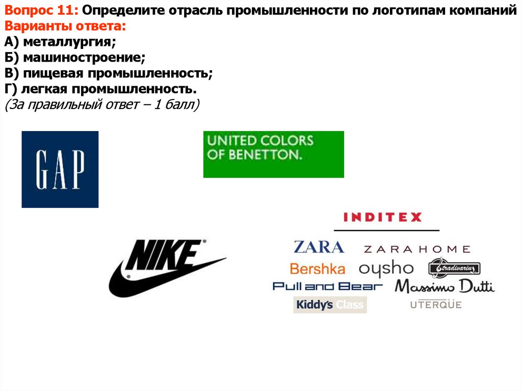 Вопрос 11: Определите отрасль промышленности по логотипам компанийВарианты ответа: