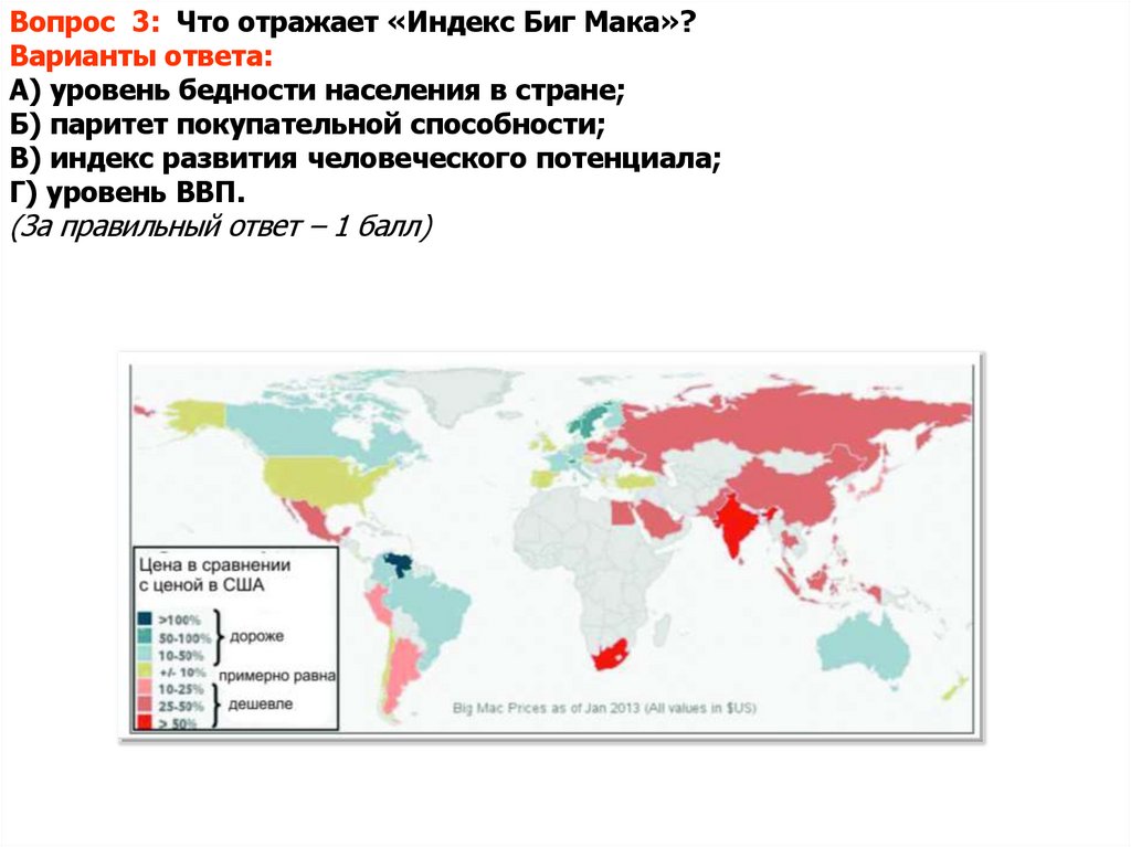 Вопрос 3: Что отражает «Индекс Биг Мака»?Варианты ответа: