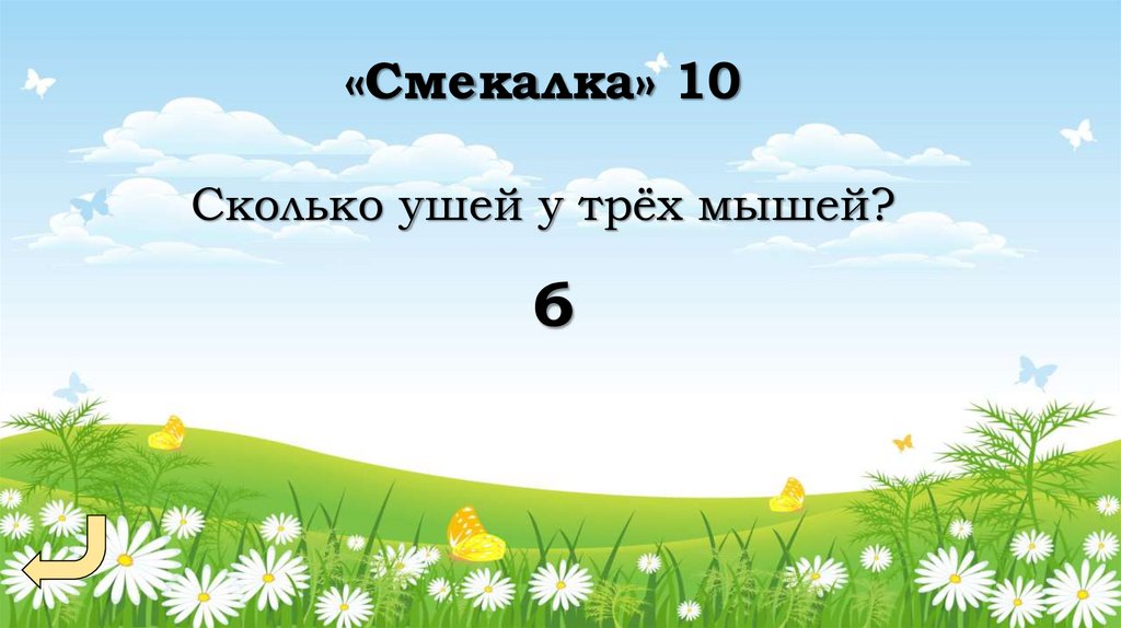 «Смекалка» 10Сколько ушей у трёх мышей?