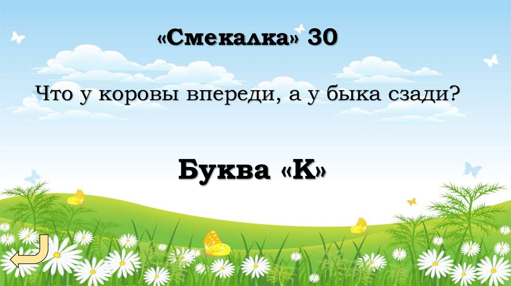 «Смекалка» 30Что у коровы впереди, а у быка сзади?
