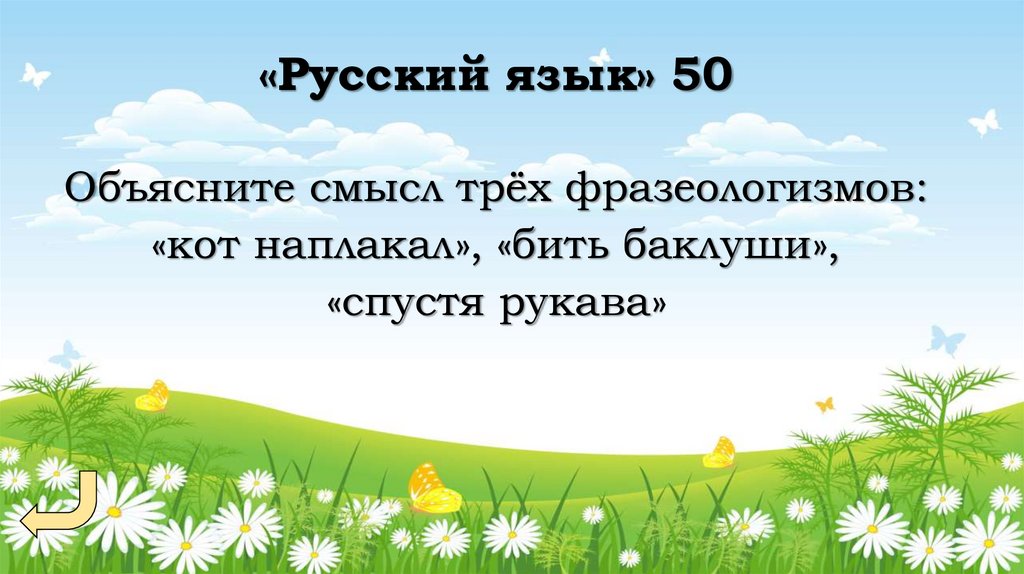 «Русский язык» 50Объясните смысл трёх фразеологизмов: