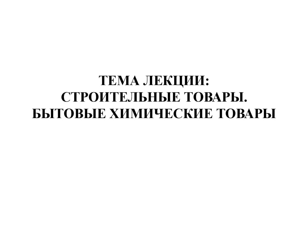 1. ТЕМА ЛЕКЦИИ: СТРОИТЕЛЬНЫЕ ТОВАРЫ. БЫТОВЫЕ ХИМИЧЕСКИЕ ТОВАРЫ