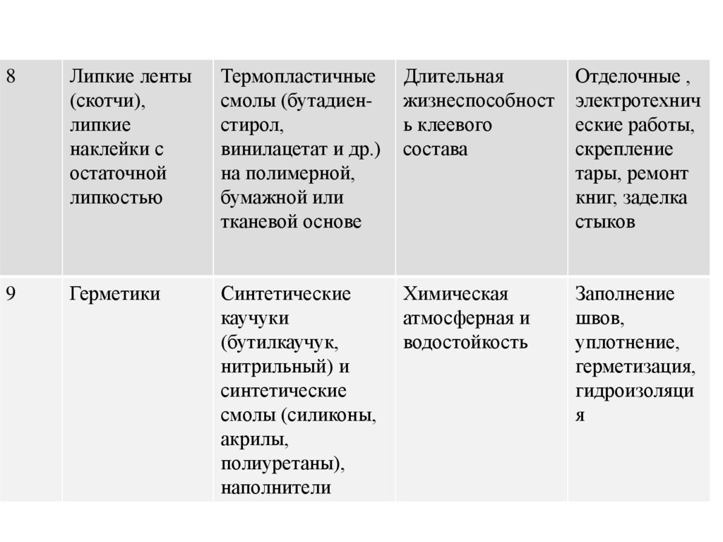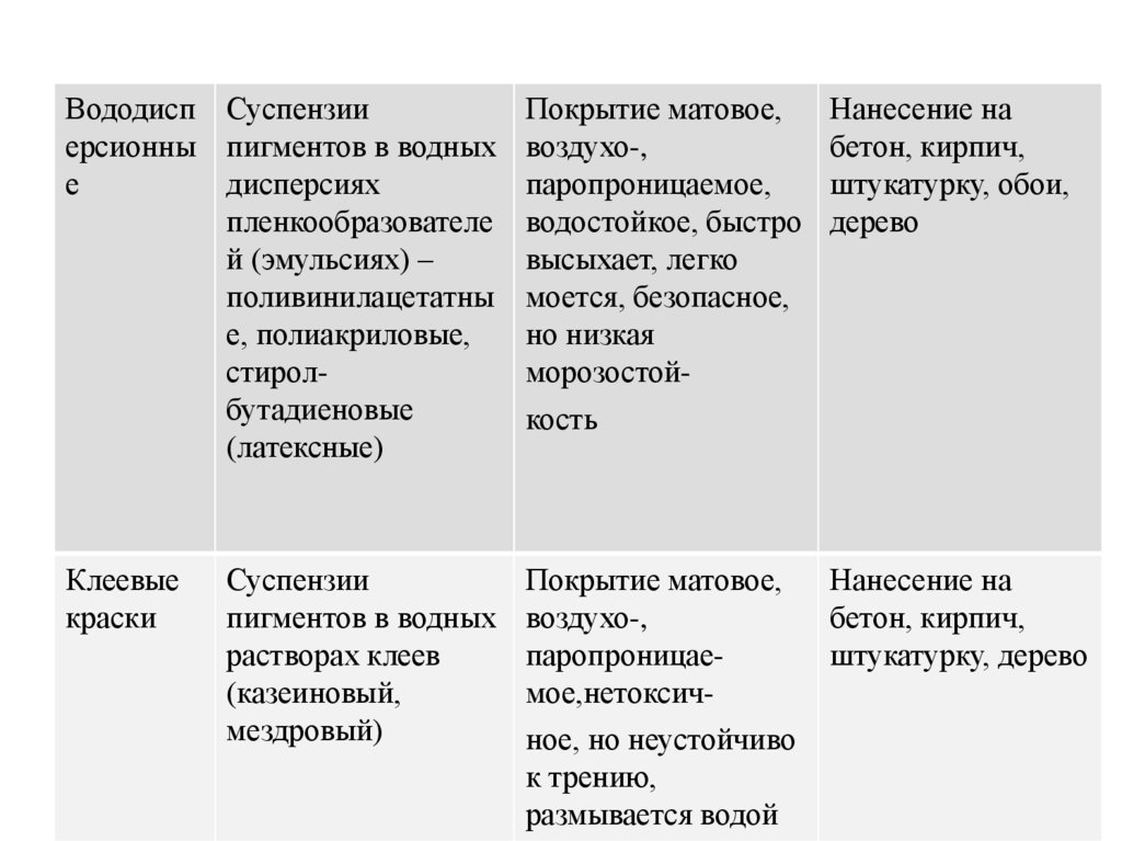 • Шпатлевки – вязкая пастообразная масса из смеси