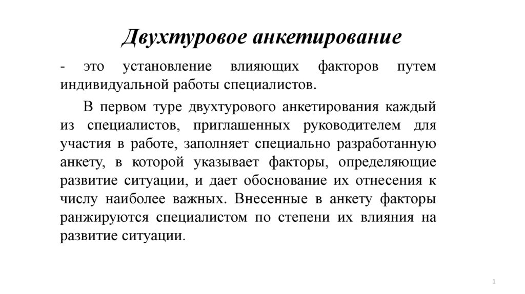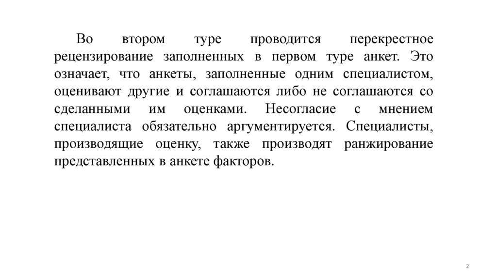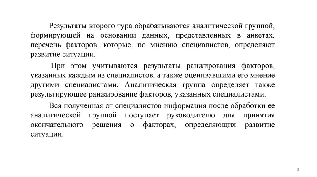 Результаты второго тура обрабатываются аналитической группой,формирующей на основании данных, представленных в анкетах,