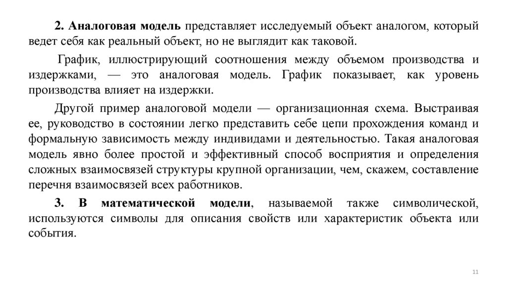 2. Аналоговая модель представляет исследуемый объект аналогом, которыйведет себя как реальный объект, но не выглядит как таковой.