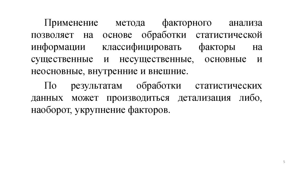В основе факторного анализа — предположение о том,что на основании статистических данных может быть