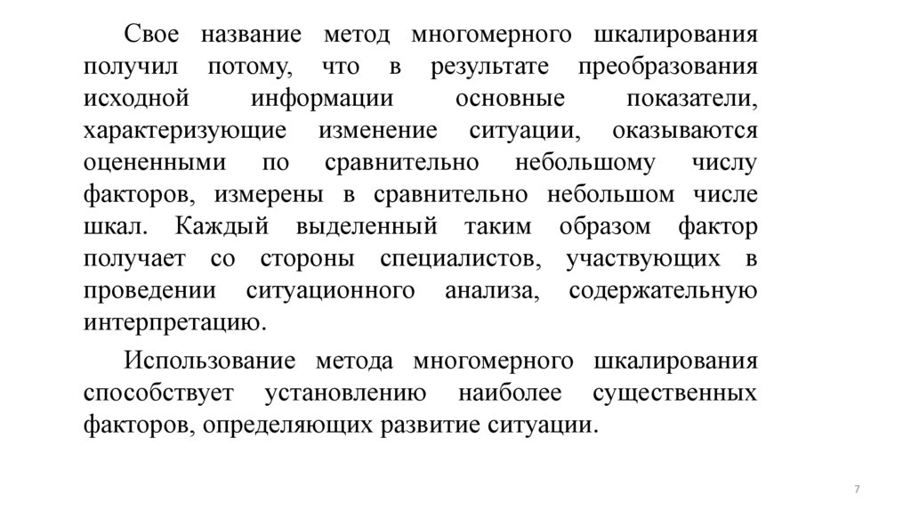 Свое название метод многомерного шкалированияполучил потому, что в результате преобразования