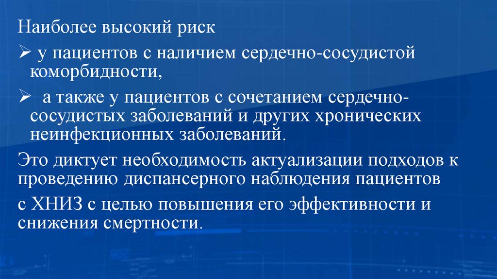 Наиболее высокий риску пациентов с наличием сердечно-сосудистой
