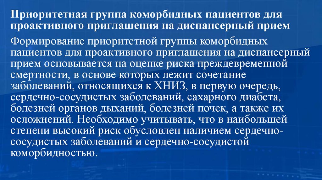 Приоритетная группа коморбидных пациентов дляпроактивного приглашения на диспансерный прием