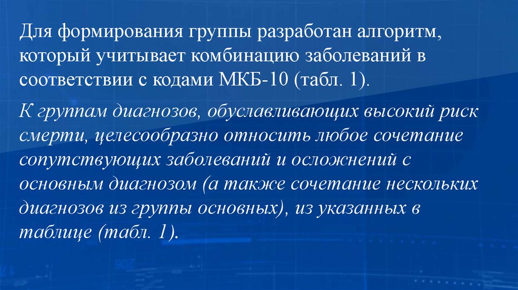 Для формирования группы разработан алгоритм,который учитывает комбинацию заболеваний в