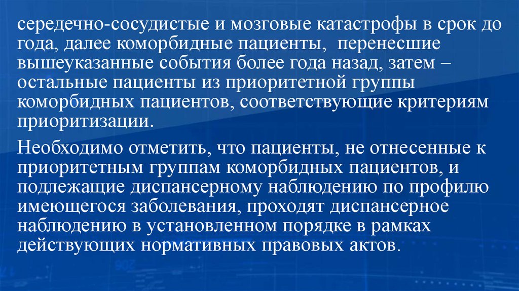 середечно-сосудистые и мозговые катастрофы в срок догода, далее коморбидные пациенты, перенесшие